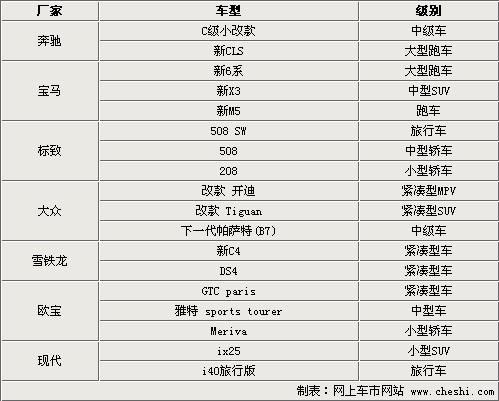 以奔馳、寶馬和標致為主的歐系品牌在此次巴黎車展上將甙類多款車型的首發(fā),在上述表格中我們所列的車型都是從未在其他車展中亮相過的,屬于全球首發(fā)。其中奔馳的改款CLS、寶馬的新X3,在不久的將來肯定會成為奔馳中國和寶馬中國所引進的全新進口車型,在中國市場銷售。
