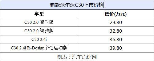 新款沃爾沃C30在車身外型上進(jìn)行了一些細(xì)微調(diào)整,使其更加運動,并且車身顏色增加了動感的火焰橙顏色,而動力/傳動系統(tǒng)則繼續(xù)沿用沃爾沃汽車的2.0L和2.4L發(fā)動機作為動力來源。