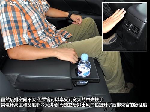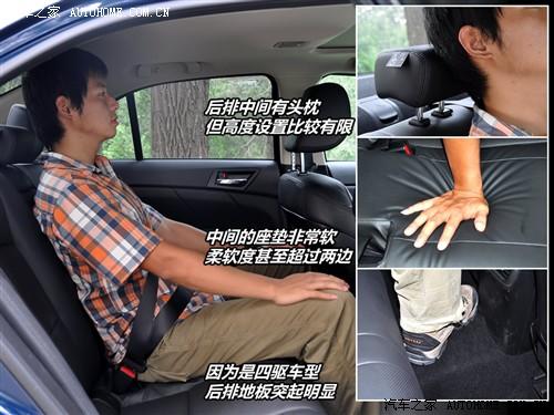 如果不在乎腳部的感受,坐在后排中間的乘客還算是比較舒適的,這主要是因?yàn)檫@里的座椅要更加柔軟而且也帶有頭枕。不過(guò)讓傳動(dòng)軸留給余地為設(shè)計(jì)的鼓包使后排地板突起明顯,因此中間乘客很難找到合適放腳的地方。