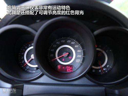 黑色真皮打孔方向盤(pán)絕對(duì)不是樣子貨,手感還算不錯(cuò),銀色材質(zhì)裝飾的部分還配備了音響系統(tǒng)的控制鍵,按鍵阻尼均勻不乏質(zhì)感。炮筒式三環(huán)儀表非常有運(yùn)動(dòng)特色,尤其是搭配了可調(diào)節(jié)亮度的紅色背光。下方的液晶屏有瞬時(shí)油耗和平均油耗顯示等功能,雖然尺寸小了一些,但是實(shí)用性很到位。