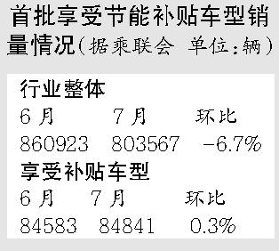 本報訊 (記者劉。﹪医粘雠_了消費者購買節(jié)能汽車按每輛3000元補貼的政策,最新統(tǒng)計顯示,取得資格的車型在7月汽車銷售淡季仍然錄得銷售增長,顯示政策受到市場歡迎。