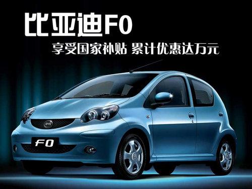 比亞迪F0的上市,對(duì)國(guó)內(nèi)微型車市場(chǎng)造成了極大的沖擊。無論在造型設(shè)計(jì)還是價(jià)格等方面,F(xiàn)0都擁有得天獨(dú)厚的優(yōu)勢(shì),這也為F0在微型車市場(chǎng)站穩(wěn)腳跟 鋪墊了堅(jiān)實(shí)的根基。近期,編輯從比亞迪北京經(jīng)銷商處了解到,比亞迪F0可以享受國(guó)家補(bǔ)貼3000元,加之店內(nèi)優(yōu)惠,累計(jì)優(yōu)惠達(dá)到1萬元,詳情請(qǐng)見下表: