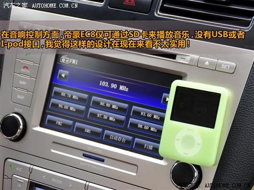 位于中控臺(tái)上的這個(gè)大屏幕液晶顯示器可以顯示導(dǎo)航信息以及DVD視頻信息,同時(shí)通過(guò)藍(lán)牙連接還可以進(jìn)行免提通話(huà)。雖然可以播放DVD,但是EC8上卻沒(méi)有設(shè)計(jì)USB或者是I-pod接口,這未免有些落伍,難道開(kāi)這車(chē)的人都不用MP3聽(tīng)歌嗎?