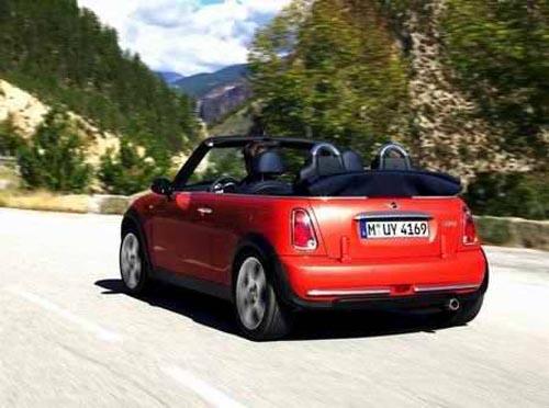 2004年Mini敞篷車上市,車頂全自動開啟,只需15秒鐘。開啟按鈕按下后,首先開啟的是一體式滑動車頂,然后整個軟車頂打開。由于采用了Z型折疊機構(gòu),整個車頂可以在后排座椅之后非常緊湊地折疊起來,無需后部蓋罩。