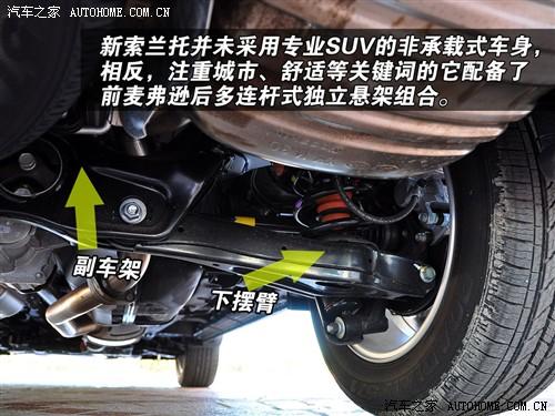 索蘭托懸掛舒適性?xún)A向較強(qiáng),使用承載式車(chē)身和多連桿后懸掛結(jié)構(gòu),充分體現(xiàn)了城市路況的駕駛需要,不過(guò)下擺臂不算單薄,進(jìn)行簡(jiǎn)單的穿越可以應(yīng)付,但是排氣管的位置偏低,所以應(yīng)該格外小心,謹(jǐn)防托底。