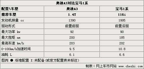 與奧迪剛剛在國內(nèi)投放的1.4T引擎的A3相比,寶馬116的發(fā)動機動力方面與1.4T的奧迪A3基本相當(dāng)。兩款車型的各項技術(shù)參數(shù)例如加速時間、油耗表現(xiàn)也處于相近的水平上,可以說BMW 116i恰好可以在價位以及動力上滿足消費者的需求。目前奧迪A3 1.4T入門車型的價格是26.8萬元,如果未來BMW 116i的官方定價與我們的預(yù)測接近,那么25萬元左右的價格加上2.0升排量和后輪驅(qū)動,絕對稱得上是奧迪A3的勁敵。