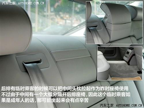 5座版車型后排中央可乘坐一名成員,靠背可以拉出一個碩大的頭枕為中間的乘員提供頸部的放松與安全保護(hù),但是由于傳動軸的存在地板上的凸起過于嚴(yán)重,所舒適性會有折扣;中間扶手寬大厚實(shí),這也是豪華行政級轎車的最基本要素。