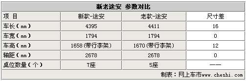 上海大眾即將批量生產(chǎn)的小改款途安在車身尺寸上與國外已經(jīng)上市銷售的車型基本一致,與現(xiàn)款車型相比幾乎沒有變化。小改款途安仍舊來自大眾的PQ35平臺(tái),與老款車型相比在長度方面增加了1.6厘米,寬度、軸距不變,高度僅增加了12毫米。以前2.0L車型沒有第三排座椅,為標(biāo)準(zhǔn)5座。小改款的途安將第三排座椅標(biāo)配,成為了標(biāo)準(zhǔn)的7座MPV車型。