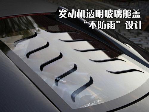 后部設(shè)計風格非?褚埃囄仓醒敕胖门普盏膮^(qū)域已不見蹤影,而是換成了一塊蜂窩狀透氣網(wǎng),發(fā)動機外圍的各種管道清晰可見。排氣系統(tǒng)經(jīng)過了運動化改造,雙排氣管口徑碩大。后包圍同樣是采用碳纖維材料打造,加裝的車底擴散器極具立體感。