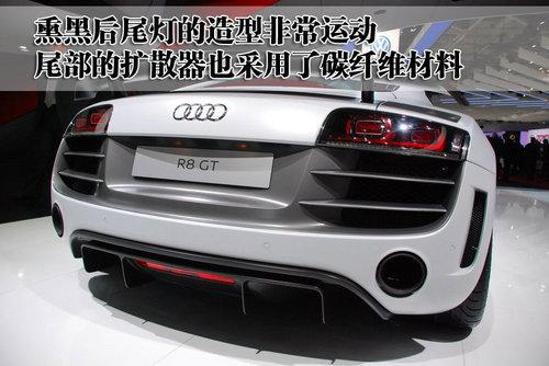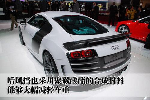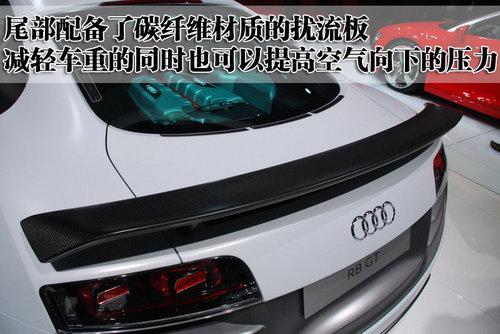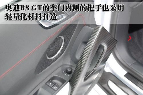 奧迪R8 GT的后風擋也采用聚碳酸酯的合成材料打造,有助于車身的重量減輕。而且這款車的尾部配備了碳纖維材質(zhì)的擾流板,在減輕車重的同時也可以提高空氣向下的壓力,達到高速、穩(wěn)定的效果。