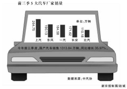 中國汽車工業(yè)協(xié)會昨日發(fā)布最新統(tǒng)計數據稱,今年前三季度,國產汽車產銷1308.27萬輛和1313.84萬輛,同比增長36.10%和35.97%,逼近去年全年水平。而全年銷量或將超過美國歷史最高銷量,達到1700萬輛,并在2015年實現(xiàn)2500萬輛產能規(guī)模。