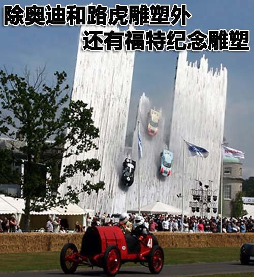 在奧迪百年慶典時,Gerry Judah就為奧迪量身打造了紀(jì)念雕塑。奧迪百年慶典雕塑座重達(dá)40多噸,高35米,采用鋼結(jié)構(gòu)雕塑,展示了兩輛汽車直沖云霄的場景,祝福奧迪公司能在下一個百年更上一層樓。雕塑上的兩輛汽車分別為1937年經(jīng)典流線賽車和R8 V10引擎運(yùn)動跑車。設(shè)計(jì)師稱,這項(xiàng)雕塑體現(xiàn)了奧迪汽車的運(yùn)動精神、業(yè)界威信和開拓勢頭。它將是今年英格蘭古德伍德速度節(jié)上的一大亮點(diǎn)。