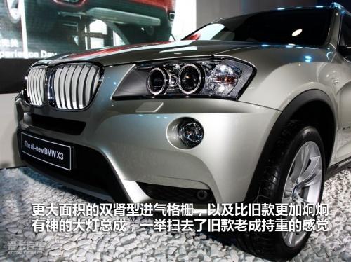 外觀方面全新寶馬X3外型延續(xù)了寶馬X系車型的特點(diǎn),雖然X車系中往下有X1、往上有X5及X6,但新X3并不是縮小版的X5,很多獨(dú)有的外型特征,顯示出X3與眾不同的性格。