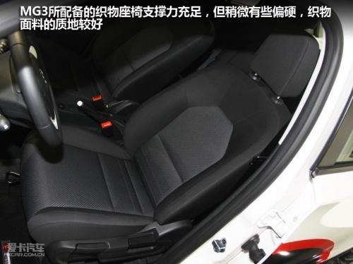 MG3配備的織物座椅與MG6裝備的織物座椅非常類似,支撐力充足,包裹感也比較到位,但座墊稍硬,會影響一些乘坐舒適感,還好織物座椅的面料質(zhì)地不錯。這臺MG3展車配備了手動調(diào)節(jié)座椅,操作起來比較順手,人機(jī)工程學(xué)設(shè)計(jì)合理。