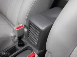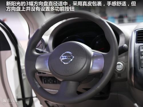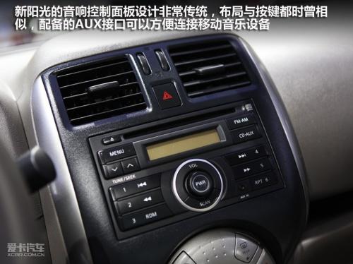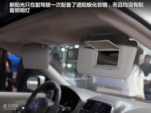 新陽光的音響控制面板設(shè)計十分傳統(tǒng),布局與按鍵都與現(xiàn)在主流的日產(chǎn)車型一致,并沒有什么新鮮感。倒是圓形的自動空調(diào)控制面板設(shè)計的非?蓯郏切玛柟鈨(nèi)飾的一大亮點,而且操作起來沒有任何難度。新陽光只有副駕駛位置配備了遮陽板化妝鏡,而且沒有配備照明燈,讓人有些不解。
