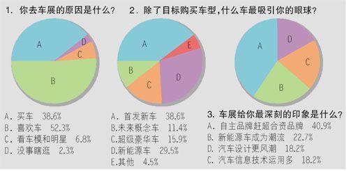 對廣州車展你感興趣嗎?車展上什么車最吸引你的眼球?本屆車展給你最深刻的印象是什么?上周,本報(bào)聯(lián)合新浪汽車進(jìn)行了調(diào)查,結(jié)果顯示,大部分的讀者對汽車有著濃厚的興趣,而且對新車以及新能源車的關(guān)注度遠(yuǎn)遠(yuǎn)超過了明星車模。