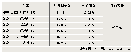據(jù)4S店銷售人員介紹:目前駿逸無現(xiàn)車,全部需要預(yù)訂,訂車周期為1個月左右。由于駿逸銷量不佳,目前優(yōu)惠幅度達(dá)6000元,不送裝飾。