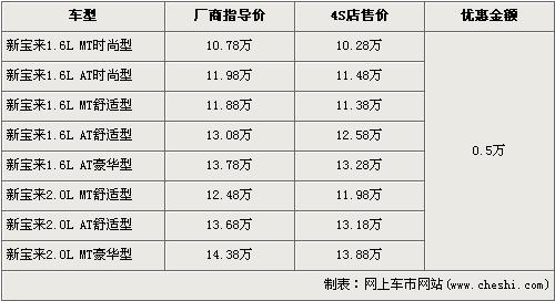 新寶來是一汽大眾于去年10月上市的新車型,新寶來共分為1.6L及2.0L兩個排量,全系車型多達7個,價格區(qū)間為10.78萬元-14.38萬元。近期根據(jù)網(wǎng)上車市價格監(jiān)測系統(tǒng)顯示,新寶來全系優(yōu)惠5000元,具體車型價格詳情請看下表: