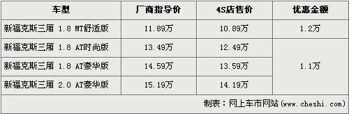 據(jù)長安福特經(jīng)銷商處銷售人員介紹,目前三廂新款?怂谷惮F(xiàn)金優(yōu)惠最高1.2萬元。三廂新款?怂狗譃1.8L和2.0L兩種排量,入門級車型的1.8L手動舒適版售價下降到了10.89萬元,高配的2.0L自動豪華版售價也降到了14.19萬元。