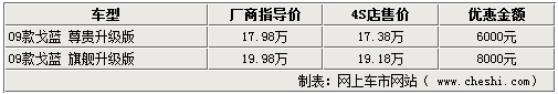 09款戈藍升級版主要是在原有車型的基礎上,對配備及價格進行優(yōu)化,尊貴升級版較原有車型新增折疊鑰匙和定速巡航等配備,旗艦升級版較原有車型,取消了方向盤切換檔功能,增加了折疊鑰匙、定速巡航、副駕座電動調節(jié)功能、胎壓偵測系統(tǒng)以及采用10輻動感鋁圈等配置。另外,旗艦運動版更將原有8喇叭音響升級為12音路金屬振膜立體聲音響,為用戶營造更豐富的影音體驗。(郝俊)