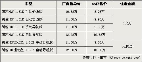 據(jù)經(jīng)銷商處銷售人員介紹,別克凱越HRV已經(jīng)停產(chǎn),店內(nèi)在售的車型只有舒適版和導(dǎo)航版,運動版車型已經(jīng)沒有庫存車。在售的舒適版和導(dǎo)航版車型優(yōu)惠1.6萬元,全系入門級的手動舒適版售價降到了8.98萬元。