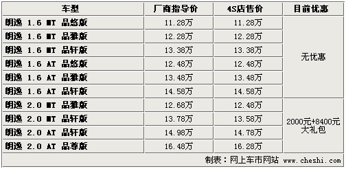 據(jù)4S店銷售人員介紹:目前朗逸全系無現(xiàn)車,全部需要預(yù)訂,訂車最少等待1周時間,最長需等1個月。目前朗逸1.6排量車型無任何優(yōu)惠,也不附贈裝飾;但購買2.0升排量車型有2000元的降價,并附贈價值8400元的“大禮包”!按蠖Y包”包括導(dǎo)航、6碟CD、雷鵬車膜、地膠、腳墊、擋泥板、牌照架、迎賓踏板等,可以說您購買2.0升排量車型可以免去做更多的裝飾,綜上推薦購買2.0升排量車型。