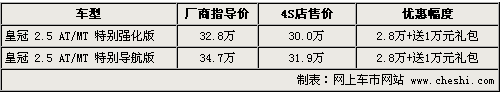據(jù)4S店銷售人員介紹,目前銷售的皇冠出現(xiàn)了較大幅度的優(yōu)惠,最高可以優(yōu)惠現(xiàn)金2.8萬元,另外可以贈送價值1萬元的禮包。而一直備受關(guān)注的新皇冠據(jù)稱將在年底亮相。全新改款后的皇冠將在3.0排量基礎(chǔ)上推出4.3引擎,同時外觀造型的改變以及內(nèi)飾和配置的全面提升都將為消費(fèi)者帶來更多的驚喜和期待。