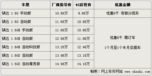 東風(fēng)日產(chǎn)的兩款主力經(jīng)濟型轎車騏達(dá)、頤達(dá)于05年上市,并于07底、08年初兩款車完成了小改款及升級方案,憑借其寬敞的車內(nèi)空間以及出色的動力性能博得了不少消費者的喜愛。根據(jù)網(wǎng)上車市價格監(jiān)測系統(tǒng)顯示,近日騏達(dá)、頤達(dá)兩款車全系車型現(xiàn)金優(yōu)惠8千元,最低售價9.88萬元,具體詳情請看下表: