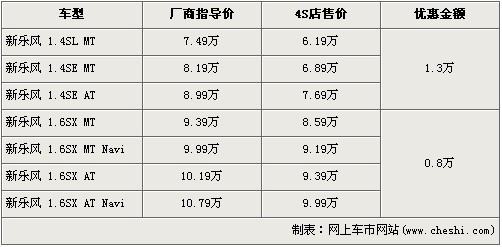 新樂風(fēng)是雪佛蘭旗下的三廂入門級家用車銷售主力,但由于上市多年,消費者對于它也產(chǎn)生了審美疲勞。在今年的5月份,帶有家族新特征的小改款新樂風(fēng)來到世人眼前,外觀的改進讓此車動感不少。近日據(jù)網(wǎng)上車市價格系統(tǒng)檢測顯示,新樂風(fēng)出現(xiàn)了最高1.3萬元的優(yōu)惠,具體價格詳情請看下表: