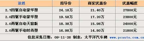 日前,編輯走訪北京現(xiàn)代二級(jí)經(jīng)銷商時(shí)了解到,目前購買途勝全系車型可享受最高2.78萬元現(xiàn)金優(yōu)惠,其中2.0兩驅(qū)手動(dòng)時(shí)尚型最終售價(jià)僅為14.8萬元,優(yōu)惠后的性價(jià)比還是很不錯(cuò)的,店內(nèi)現(xiàn)車情況較充足,具體詳情見下表: