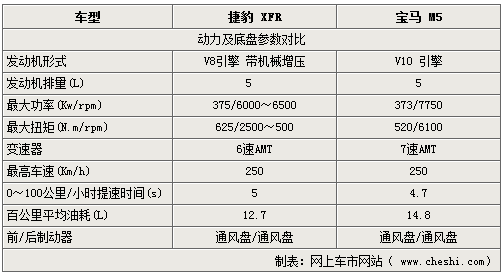 捷豹的新款轎跑車型-XFR上市后,為運(yùn)動豪華車市場帶來全新的力量。成為09年備受矚目的高性能車型之一。作為兼顧跑車性能與轎車質(zhì)感的豪華車型,捷豹XFR的價(jià)格定位也相當(dāng)不菲,188.8萬的價(jià)格下也只有寶馬的M5可以堪稱勢均力敵的對手。下面我們就來看看兩款車到底誰更有魅力。