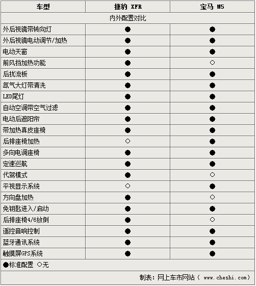 既然提到兩款車均為豪華車型,舒適配置當(dāng)然也是不能被忽視的一面。捷豹XFR則在此方面表現(xiàn)的可圈可點(diǎn),多項(xiàng)高端配置均一一齊備。而價(jià)格相差3萬的寶馬M5在此方面則略顯遜色,看來寶馬車型更加在乎駕駛樂趣。但從此方面則證明了捷豹XFR為有機(jī)會乘坐其中的駕乘者想的更多,不僅滿足了駕駛與運(yùn)動的樂趣,也可直接享受更多的舒適及便利。