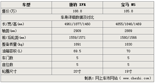 為了滿足豪華車的乘坐舒適,兩款車均增加了整車的長度及軸距,雖然令轉(zhuǎn)向半徑有所增加但是相應(yīng)的行駛穩(wěn)定亦有所提升。從外觀尺寸上來看,寶馬M5因軸距略遜于捷豹XFR而顯得車內(nèi)空間不夠寬裕。雖然在豪華以及性能表現(xiàn)上相差無幾,但從大尺寸輪轂的配置即可感受到XFR濃濃的運(yùn)動氣息,更傾向于突出跑車特質(zhì)。
