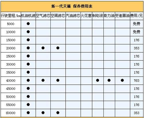 5.保養(yǎng)費。我們向東風日產(chǎn)4S店售后服務人員咨詢過,新一代天籟保養(yǎng)周期為5000km,首保在5000km時進行(免費),以后每5000km做一次保養(yǎng),以一年2萬公里來計算其一年保養(yǎng)費平均用在900元。