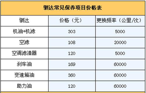 4.保養(yǎng)費(fèi):我們向東風(fēng)日產(chǎn)4S店售后服務(wù)人員咨詢過,騏達(dá)常規(guī)保養(yǎng)周期定為每5000公里一次,首保在購車后行駛1000km或一個(gè)月進(jìn)行(以先達(dá)到者為限),二保5000公里時(shí)進(jìn)行,前兩次保養(yǎng)免費(fèi)。假設(shè)一年跑2萬公里,則需要做保養(yǎng)四次。前三次都為常規(guī)保養(yǎng)(只更換機(jī)油機(jī)濾),一次303元、一次379元交替進(jìn)行。第四次保養(yǎng)(更換機(jī)油機(jī)濾+空濾+空調(diào)濾芯)為637元;如此一個(gè)周期往復(fù)。另外4萬公里保養(yǎng)時(shí)需要更換剎車油和變速箱油,保養(yǎng)價(jià)格為1090元,那么2年/4萬公里總費(fèi)用大概需要3318元左右,平均一年為1659元。