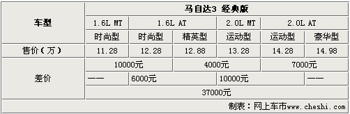 長(zhǎng)安馬自達(dá)馬3經(jīng)典版1.6L排量車型共有3款車型,由于外觀、內(nèi)飾和舒適豪華配置的差異,這3款車的最高差價(jià)為6000元。而長(zhǎng)安馬自達(dá)馬3經(jīng)典版1.6L手動(dòng)時(shí)尚型和2.0L自動(dòng)豪華型除配置差異外,動(dòng)力性能也存在一定的差距,所以差價(jià)高達(dá)3.7萬(wàn)元。
