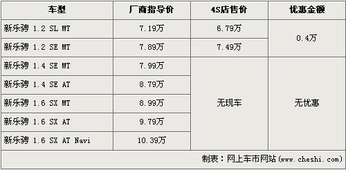 據(jù)北京雪佛蘭經(jīng)銷店銷售人員介紹,雪佛蘭新樂騁分為1.2L、1.4L、1.6L三種排量,售價區(qū)間為7.19萬元-10.39萬元。近期購買新樂騁只能夠買1.2L排量的車型,并且購買新樂騁的消費者可以得到現(xiàn)金4000元的優(yōu)惠,但是現(xiàn)車比較緊張,數(shù)量較少。1.4L和1.6L排量均沒有現(xiàn)車,所以不再此次優(yōu)惠的隊列中。