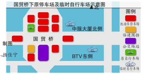 針對(duì)市民關(guān)注的自行車停放問(wèn)題,CBD管委會(huì)表示,原有的自行車停車場(chǎng)將延時(shí)開(kāi)放,同時(shí)就近開(kāi)辟兩處自行車臨時(shí)停放場(chǎng)地。一處位于原自行車場(chǎng)地的東北側(cè),中服大廈北側(cè),停放自行車數(shù)量可達(dá)200輛,與原場(chǎng)地停放數(shù)量相當(dāng)。