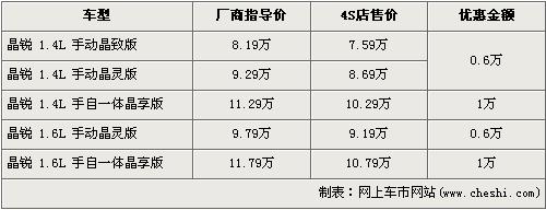 上海大眾斯柯達旗下的第二款車型晶銳已于去年12月22日上市,這款時尚、歐洲風格鮮濃的特色小車共有1.4L、1.6L兩種排量共5個車型在售,售價區(qū)間為8.19萬元-11.79萬元。近日據(jù)網(wǎng)上車市網(wǎng)站價格監(jiān)測系統(tǒng)顯示,斯柯達晶銳全系最高的優(yōu)惠從6000元升到了1萬元,具體車型價格請看下表: