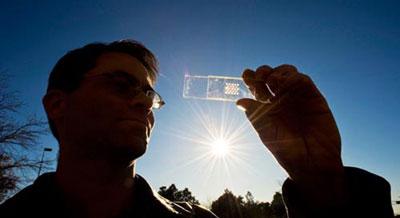 資料圖片:美科學(xué)家開發(fā)新型光伏電池。光伏電池可以把太陽(yáng)的光能直接轉(zhuǎn)化為電能
