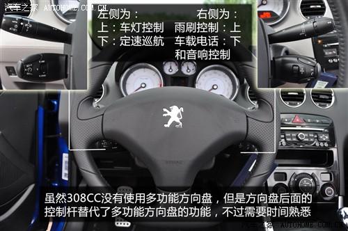 308CC定位一款運(yùn)動(dòng)型轎車,使用了和GTI手感非常相似的方向盤,粗實(shí)的的手感十分適合男性駕駛員,不過沒有多功能快捷鍵設(shè)計(jì)讓方向盤上面的小獅子略顯孤單,雖然沒有多功能方向盤,但是標(biāo)致還是將方向盤后面增加了多功能控制桿,說實(shí)話時(shí)間長了感覺還是控制桿好用,只是上手難度比較大。
