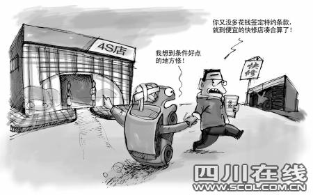 車主張先生告訴記者,“按照新規(guī)定,對(duì)于沒有簽訂特約條款的車主來說,今后出險(xiǎn),再去4S店修車有可能就更加困難,保險(xiǎn)公司肯定會(huì)喊我們?nèi)ブ付ǖ谋阋说木S修店!