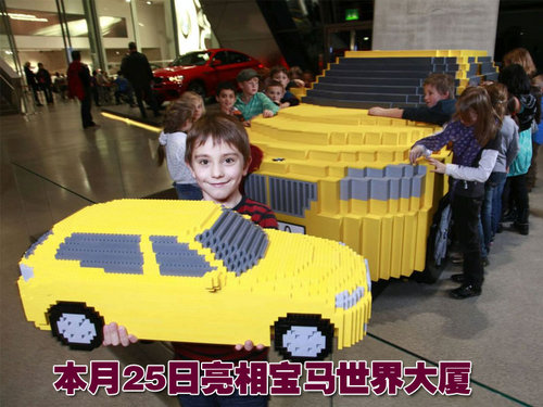 這款寶馬X1是由這些孩子在四天的時(shí)間內(nèi)用樂高板塊拼裝而成的,主要采用的為黃色的樂高板塊。所拼裝完成的X1車型長為4.5米,寬為1.8米,高為1.5米。