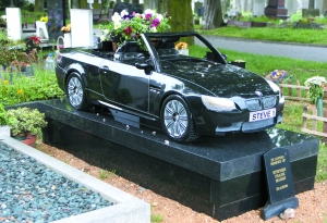 英國《每日郵報》網(wǎng)絡(luò)版5日援引馬什女兒克麗的話報道,馬什從小就是一個車迷,而且對德國“寶馬”汽車公司的產(chǎn)品情有獨鐘!八傞_寶馬車,”克麗說,“我們不能為他樹一個普通的墓碑!瘪R什的家人選擇他最喜愛的“寶馬”M3敞篷轎跑車作為墓碑的原型,委托國外一家工廠制造。墓碑由花崗巖制成,重大約一噸。墓碑上有完整的儀表板、車牌,每個車輪上印有“寶馬”標(biāo)志。馬什的家人在“寶馬車”的雨刮下放置一張違規(guī)停車罰單,以表明馬什是一個具有幽默感的人。馬什的家人為這個墓碑花費大約7.5萬美元。這一金額與真車價格相差無幾。