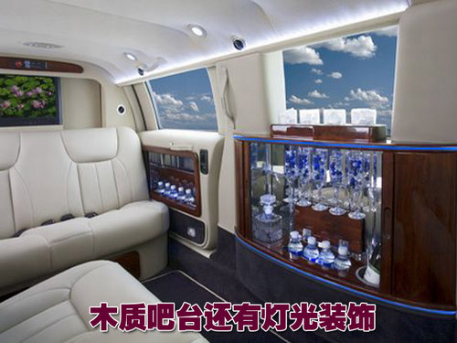 上等的真皮裝潢、電視以及DVD娛樂系統(tǒng)、小型酒吧臺均是該車的必要配置,此外其還擁有WiFi 無線網(wǎng)絡系統(tǒng)。12伏的電源插口,不銹鋼點綴裝飾的木質(zhì)裝飾吧臺還有燈光作為點綴。