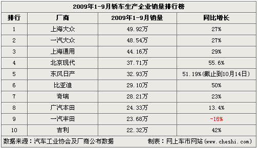 近日,來(lái)自汽車工業(yè)協(xié)會(huì)的數(shù)據(jù)顯示,今年1-9月,乘用車?yán)塾?jì)銷量超過(guò)720萬(wàn)輛,比去年全年凈增48.59萬(wàn)輛,同比增長(zhǎng)超過(guò)40%,創(chuàng)歷年最高。轎車生產(chǎn)企業(yè)銷量排行前十位的廠商,都獲得了大幅增長(zhǎng)當(dāng)然不包括一汽豐田,它比較意外的出現(xiàn)了負(fù)增長(zhǎng),同比下滑了16%,是銷量排行前十位的廠商中唯一下滑的車廠(詳見(jiàn)下表)。