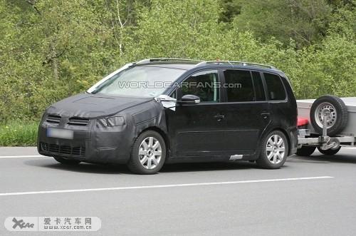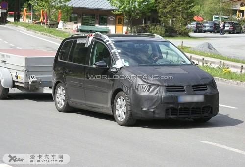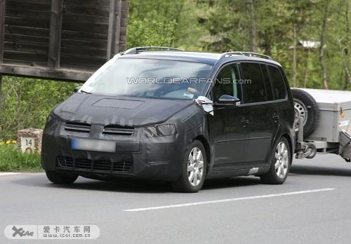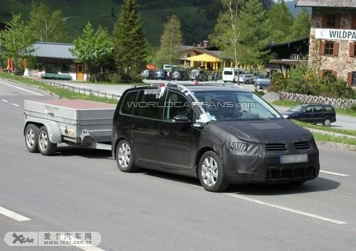 最近諜照記者首次在大街上拍到了下一代大眾途安測試車的照片,在它的后面還掛了一輛拖車。