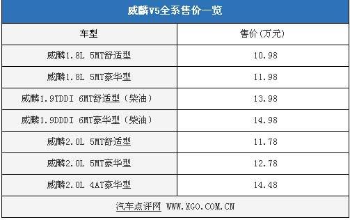 9月8日奇瑞旗下四大品牌之一威麟正式宣布投入運營,旗下的第一款車型威麟V5 1.9L柴油版本也將于當(dāng)天正式登場。威麟V5全系共有7款車型,售價10.98-14.98萬元,具體售價如下表: