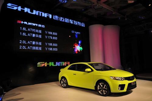 1月21日,進口起亞首款雙門轎跑車SHUMA(速邁)正式上市,共推出1.6L和2.0L兩款CVVT技術發(fā)動機的車型,多達9種色彩,價格區(qū)間從16.98萬-19.88萬元。預計本月底樣車將可到店,預訂需要交5000元-1萬元訂金。
