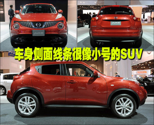 2008年3月東風日產正式推出了首款交叉車型逍客(Qashqai)。逍客又可以稱的上是中國汽車市場上的第一款真正意義上的跨界車。逍客不僅擁有SUV的時尚外觀和越野性,又兼顧了轎車的舒適性和省油優(yōu)勢,憑借這些優(yōu)勢逍客也贏得了大消費者的青睞。同時日產汽車看準了這個市場,將大量的人力物力投入到新款交叉車型的研發(fā)上。近日日產就在英國當?shù)匕l(fā)布全新一款入門級跨界車型-JUKE,英國當?shù)厥蹆r區(qū)12,795英鎊至19,995英鎊之間,約合人民幣12.7萬——19.8萬元。單從售價上看JUKE還是相當具有市場競爭力的,下面就讓我們一同領略一下JUKE的風采。
